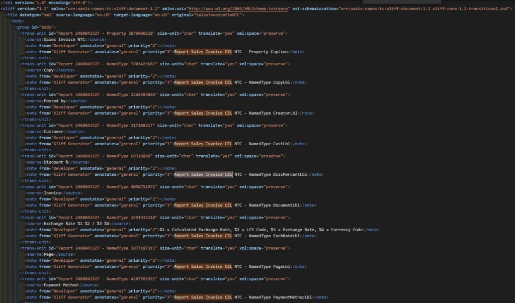 4. Z Core Localization Pack for Czech.cs-CZ.xlf smazat vše kromě záhlaví, zápatí a trans-unit našeho reportu: Report Sales Invoice CZL