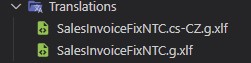 6. Upraveno kopii jsme přejmenovali a přepsali SalesInvoiceFixNTC.cs-CZ.g.xlf